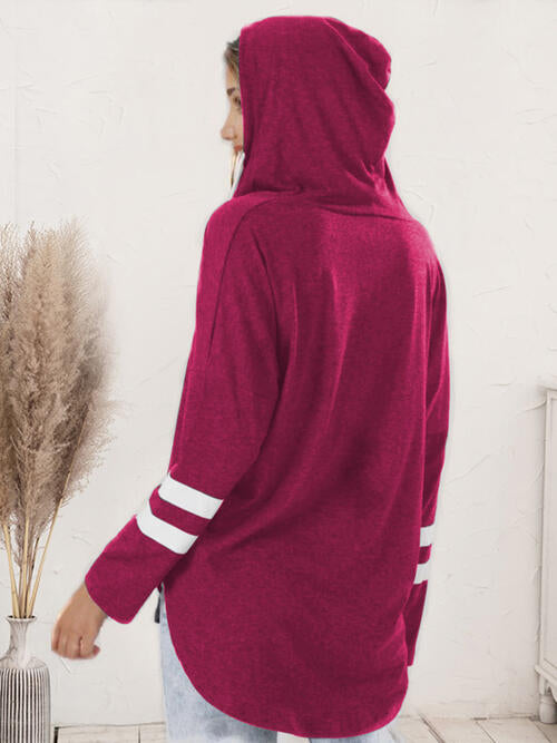 Striped V-Neck Drastring Hoodie